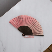 Елегантно ръчно ветрило, изработено от висококачествен бамбук и полиуретан (PU), съчетаващо стил и практичност. Перфектен аксесоар за горещите дни или като допълнение към тематичен тоалет.