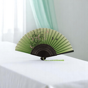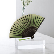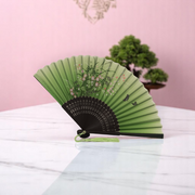 Елегантно ръчно ветрило, изработено от висококачествен бамбук и полиуретан (PU), съчетаващо стил и практичност. Перфектен аксесоар за горещите дни или като допълнение към тематичен тоалет.