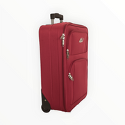 • Описание вън: Две колелета; регулируема телескопична дръжка с бутон тип PUSH; две дръжки за хоризонтално и вертикално носене; вградена информационна таблица ;два предни джоба с цип .Разширение от 5 см. за повече пространство