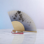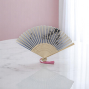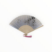 Елегантно ръчно ветрило, изработено от висококачествен бамбук и полиуретан (PU), съчетаващо стил и практичност. Перфектен аксесоар за горещите дни или като допълнение към тематичен тоалет.