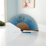 Елегантно ръчно ветрило, изработено от висококачествен бамбук и полиуретан (PU), съчетаващо стил и практичност. Перфектен аксесоар за горещите дни или като допълнение към тематичен тоалет.